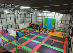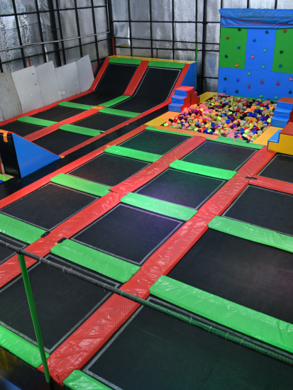 Jump high, flip around, and bounce safely in our giant indoor area.