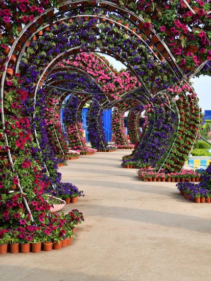 Walk through beautiful, colorful flowers. A peaceful, scenic escape for all.